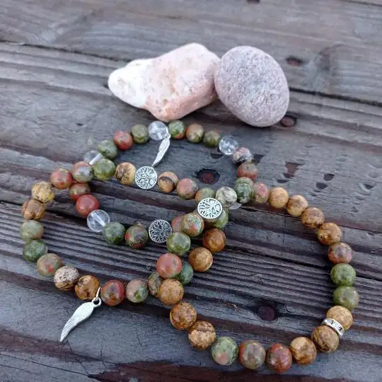 Création artisanale en unakite aux teintes naturelles, ce bracelet favorise l’équilibre émotionnel, le lâcher-prise et l’harmonie du cœur. Un bijou doux et authentique, réalisé avec passion pour accompagner votre bien-être au quotidien.