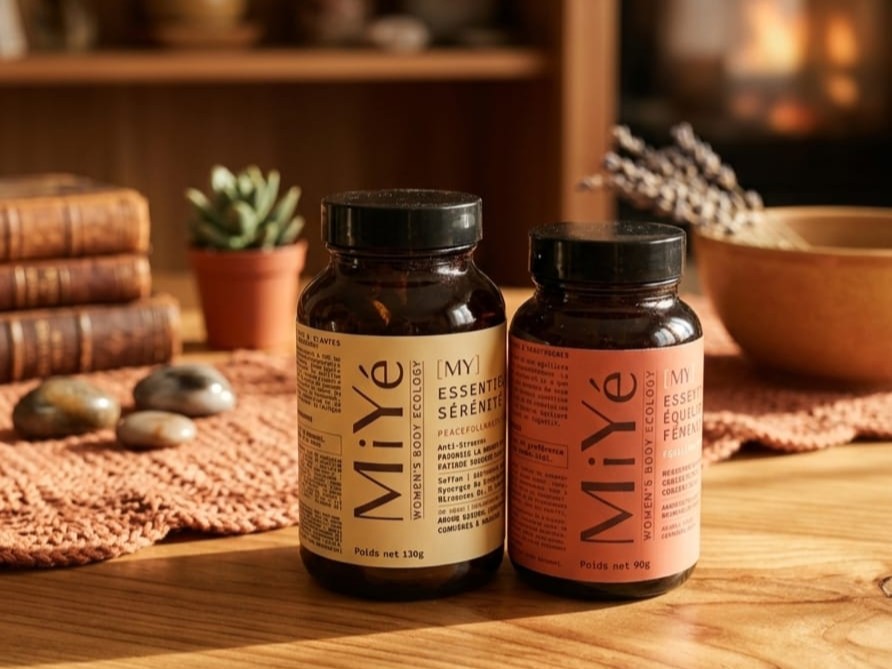 Je sais à quel point nos cycles peuvent influencer notre quotidien… fatigue, émotions intenses, stress, sommeil perturbé. Le duo de compléments alimentaires Équilibre Féminin et Sérénité de MiYé a été pensé comme un véritable soutien pour accompagner les femmes avec douceur à chaque étape de leur vie hormonale.