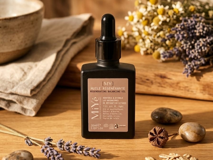 Je suis littéralement tombée amoureuse de cette huile régénérante visage Miyé. Dès les premières gouttes, elle enveloppe la peau d’un voile délicat, presque sensoriel, qui transforme instantanément ma routine en un véritable moment de bien-être. Sa texture fine pénètre rapidement sans laisser de film gras, tout en nourrissant intensément l’épiderme. Selon notre mode de vie et avec l’âge, notre barrière cutanée a tendance à s’affiner et les mécanismes de protection de la peau faiblissent laissant ainsi notre visage plus sensible aux agressions de l’environnement et à la clé une peau plus fine et plus sèche, qui retient moins efficacement l’eau. La baisse des œstrogènes à partir de 30/35 ans peut aussi entraîner une peau plus sèche et plus réactive. Spécialement pensée pour préserver l’équilibre du microbiome cutané avec les post biotiques, cette huile à la texture ultra légère “water-like” est un concentré d’acides gras essentiels, Oméga 3 et 6, acide gamma linoléique mais aussi d’antioxydants et de céramides végétales, qui constituent 50% de notre barrière cutanée et tendent à diminuer avec l’âge. Sa synergie d’actifs contribue à relancer les mécanismes de régénération de la peau.